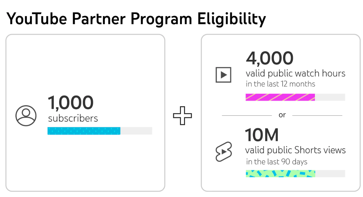 Either 4,000 watch hours in the past 12 months or 10 million Shorts views in the past 90 days
